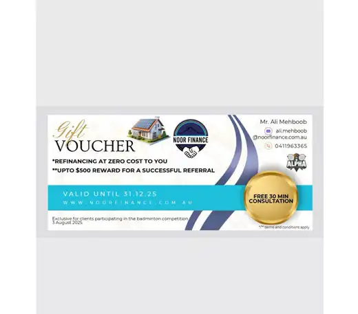 Whether you’re a first-time buyer, investor, or simply exploring your refinancing options, our team is here to guide you. With this voucher, you’ll get a complimentary 30-minute consultation with Mr. Ali Mehboob and the Noor Finance team. During this session, we’ll: